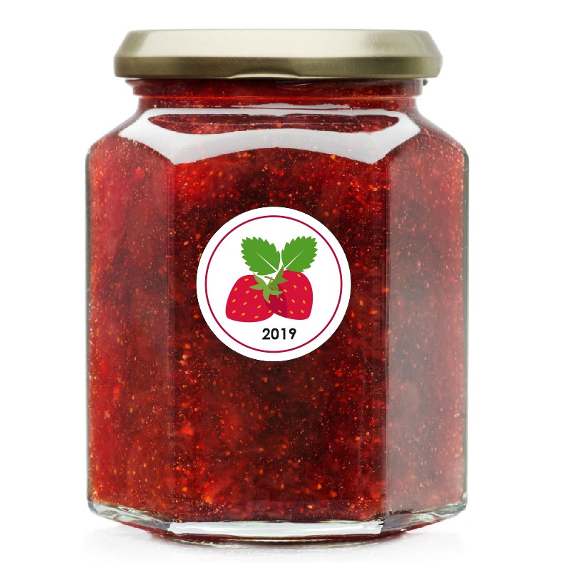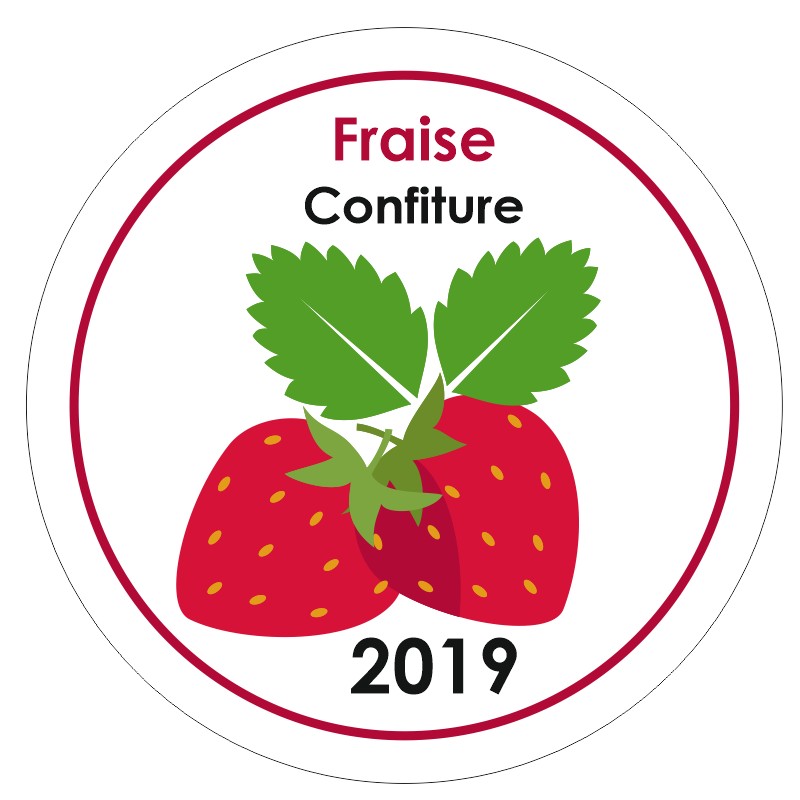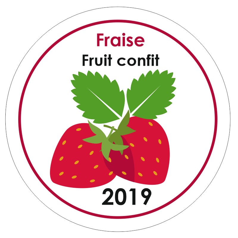 Étiquette autocollante pour pots et bocaux contenant confiture, compote, gelée, fruits confits ou fruits entiers.