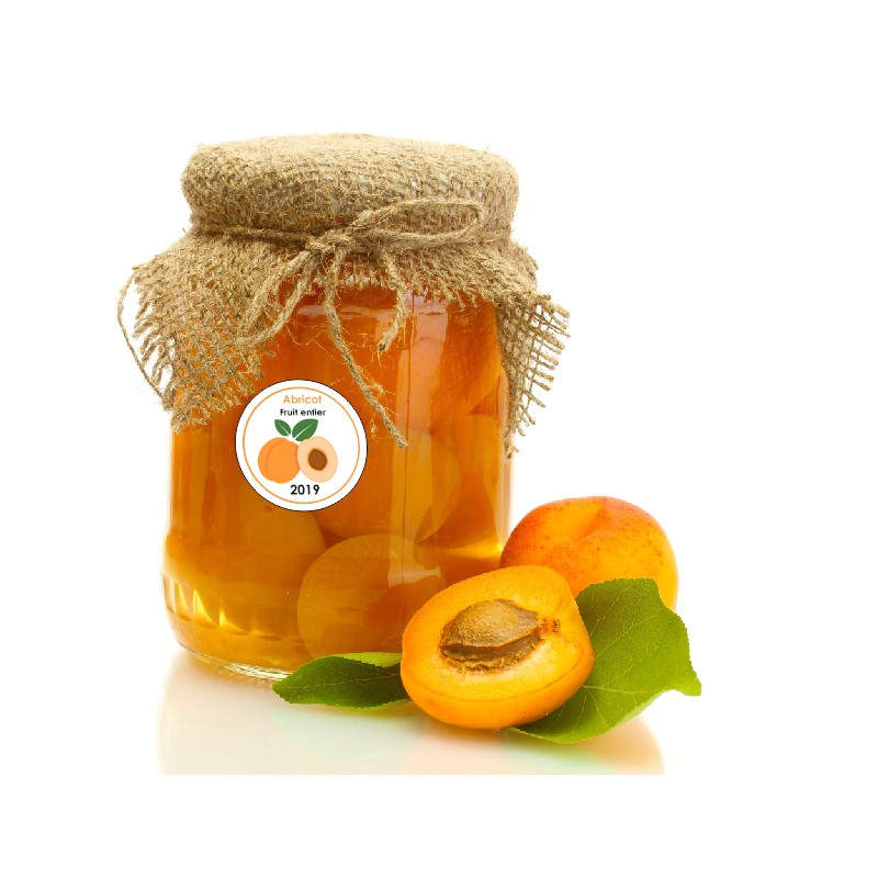 Étiquette autocollante pour pots et bocaux contenant confiture, compote, gelée, fruits confits ou fruits entiers.