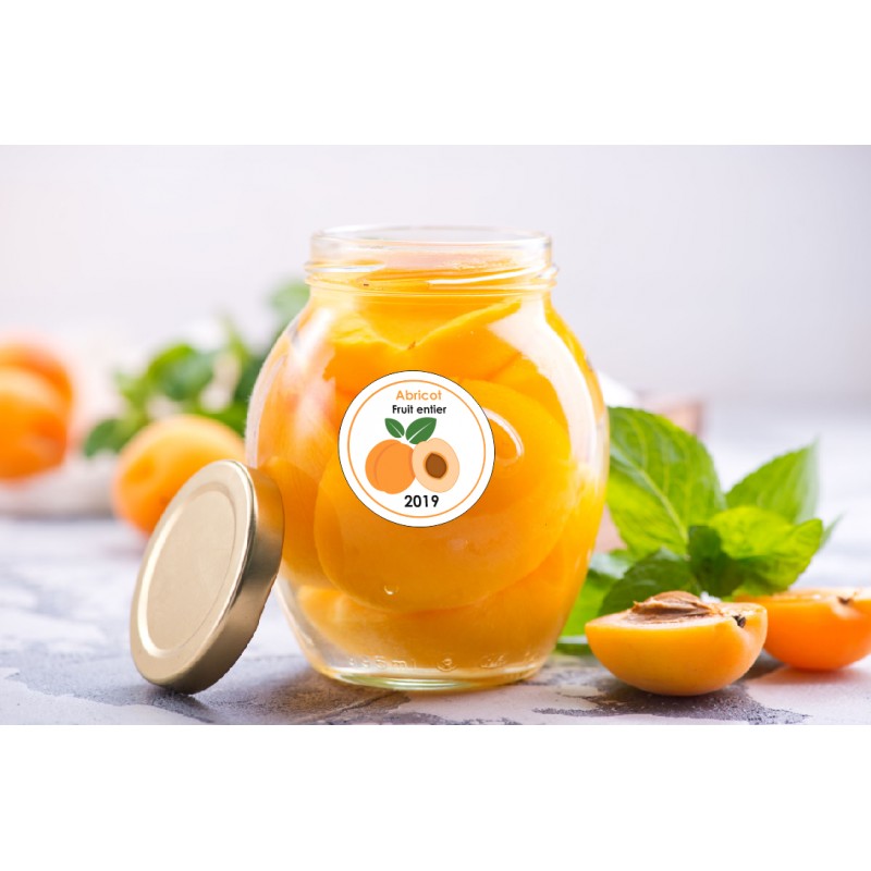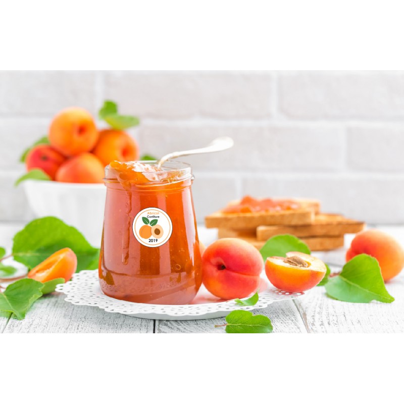 Étiquette autocollante pour pots et bocaux en verre. Idéal pour toute vos préparations faites maison : confiture, gelée, compote, fruits confis et fruits entiers.