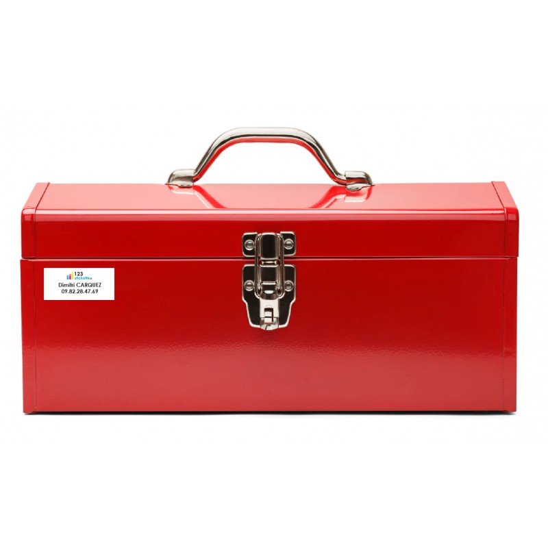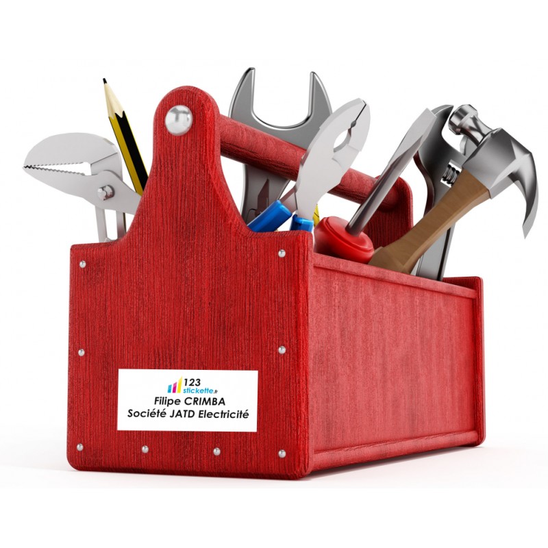 Étiquette autocollante nominative boîte à outils. Marquez grâce à ce sticker votre nom ou celui de votre entreprise afin de repérer votre matériel facilement et le différencier de celui des autres.