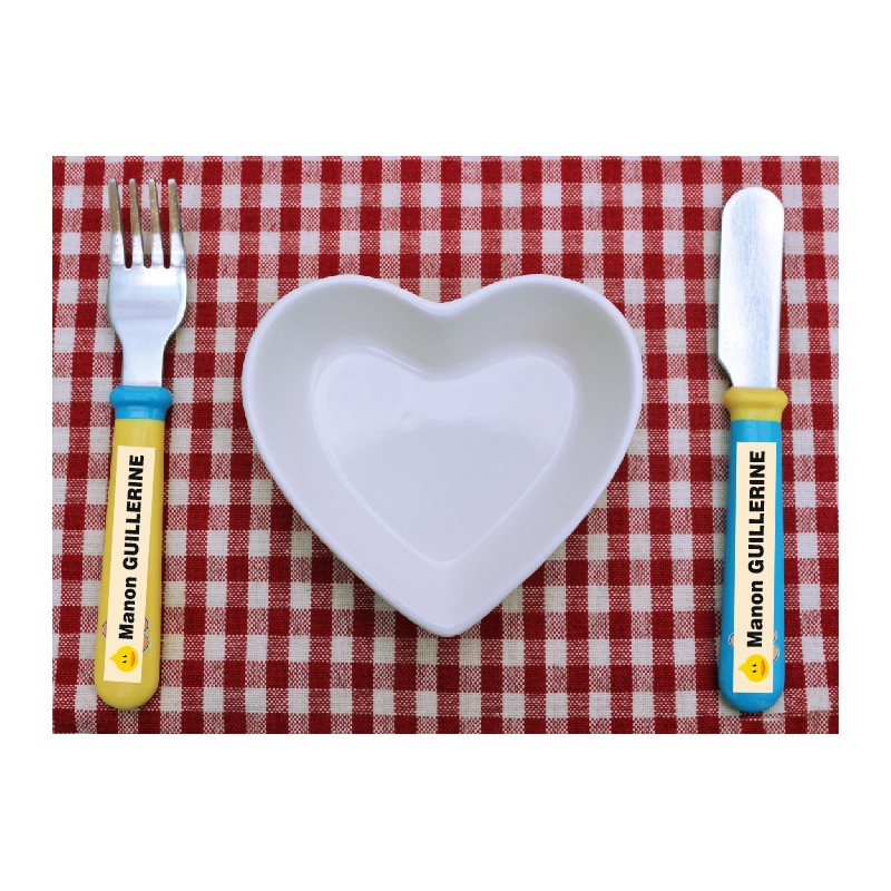 Étiquette personnalisée + prénom pour couverts : fourchette, couteau, cuillère. Marquez le prénom de votre enfant avec ces étiquettes personnalisées sur ses affaires pour qu'il puisses les retrouver lui-même.