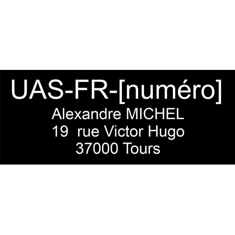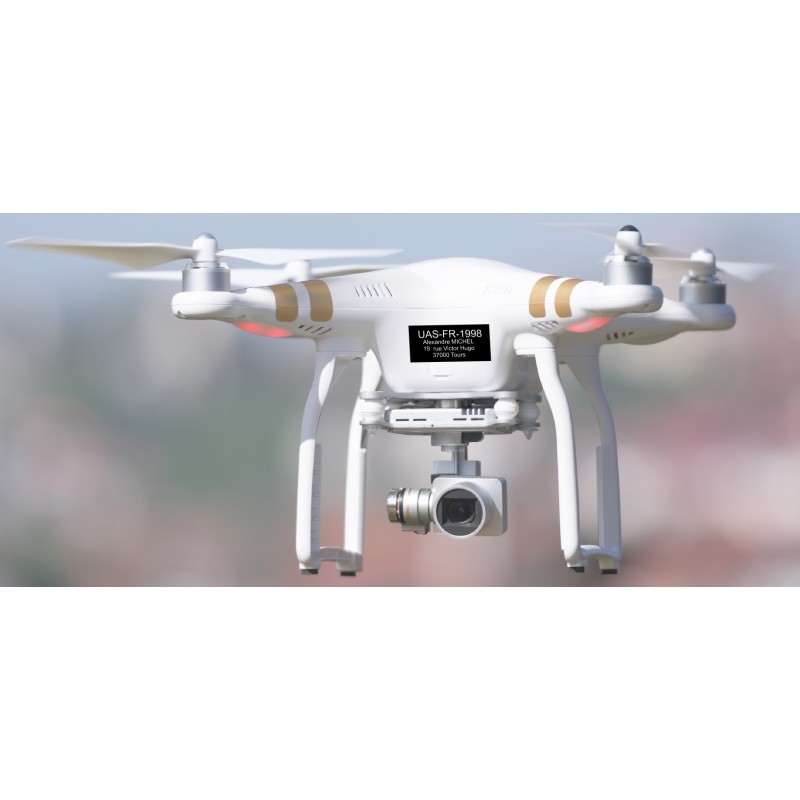 Sticker immatriculation drone noir. Coller ce sticker sur votre drone de plus de 800 grammes pour être dans la réglementation.