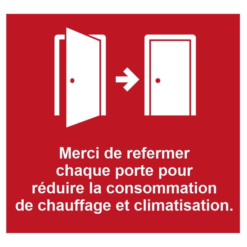 Sticker "Merci de refermer la porte pour limiter l'utilisation de chauffage et climatisation". A coller sur bureau ou mur. Sensibilisez vos équipes pour limiter déchets et gaspillage de ressources pour une entreprise plus responsable.