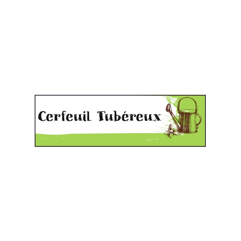 Étiquette Cerfeuil tubéreux graine potager. Retrouvez vos semis & plantations grâce à ce sticker pour vos pots ou petits panneaux pour faire de votre jardin un lieu organisé.