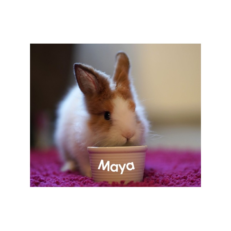 Sticker prénom gamelle lapin. Personnalisation de la gamelle de votre animal de compagnie avec un sticker à son nom pour son mangeoire ou abreuvoir.